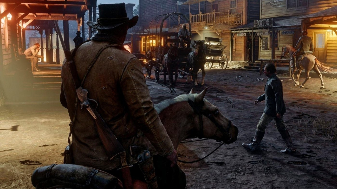 Red Dead Redemption 2 include anche il mondo condiviso di gioco di Red Dead Online. Dai forma al tuo percorso combattendo uomini di legge, bande di fuorilegge e feroci animali selvatici per farti una vita nella frontiera americana. Costruisci un accampamento, viaggia in solitaria o forma una Posse ed esplora, dalle innevate montagne del nord alle paludi del sud, dagli avamposti remoti alle fattorie e città frenetiche. Insegui ricercati, caccia, pesca e commercia, vai alla ricerca di tesori esotici, gestisci la tua distilleria di moonshine illecita, o intraprendi il Ruolo del Naturalista per imparare i segreti del mondo animale e molto altro, in un mondo dall’incredibile profondità e dettaglio.